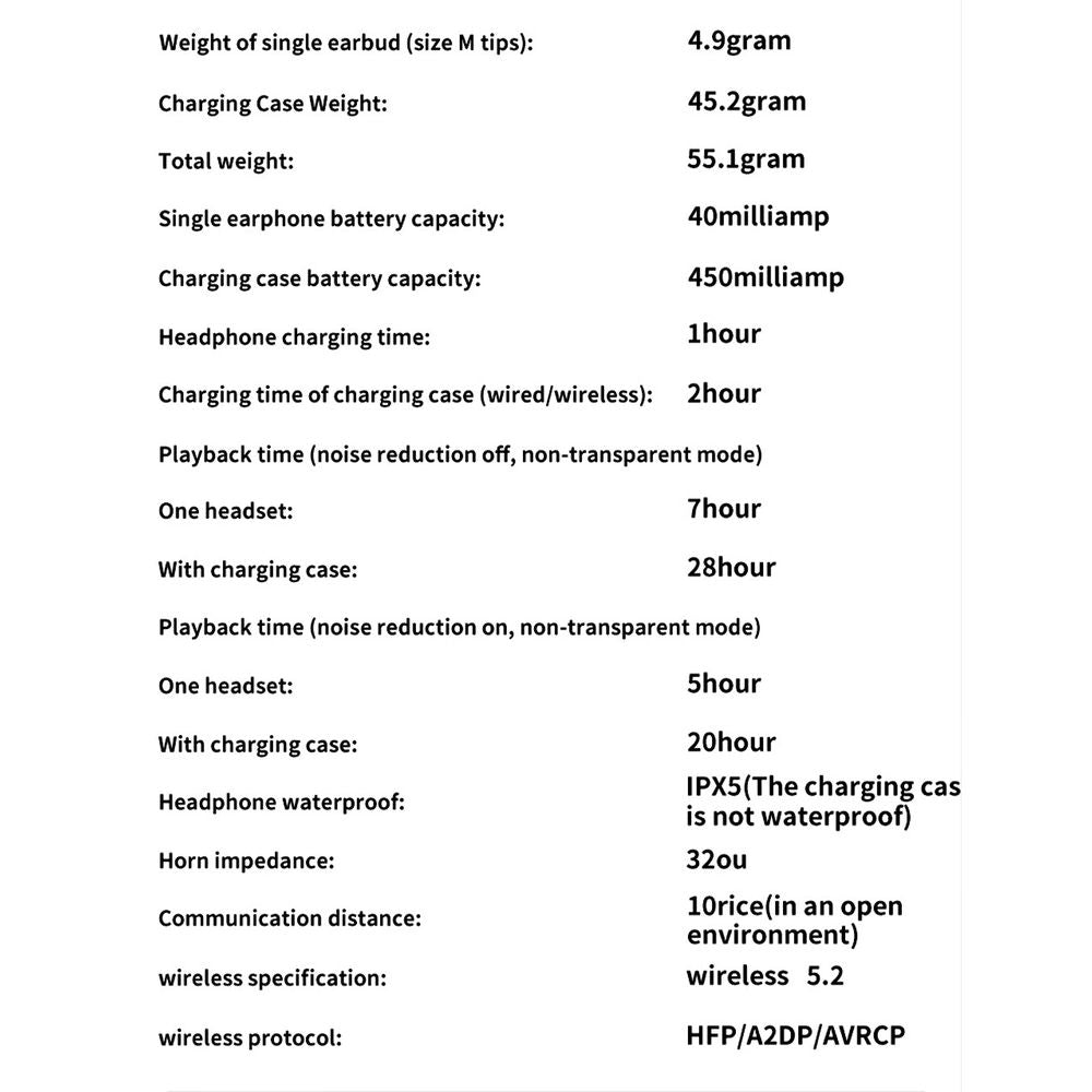Case and Earbuds Fully Charged Music playback: 28 hours