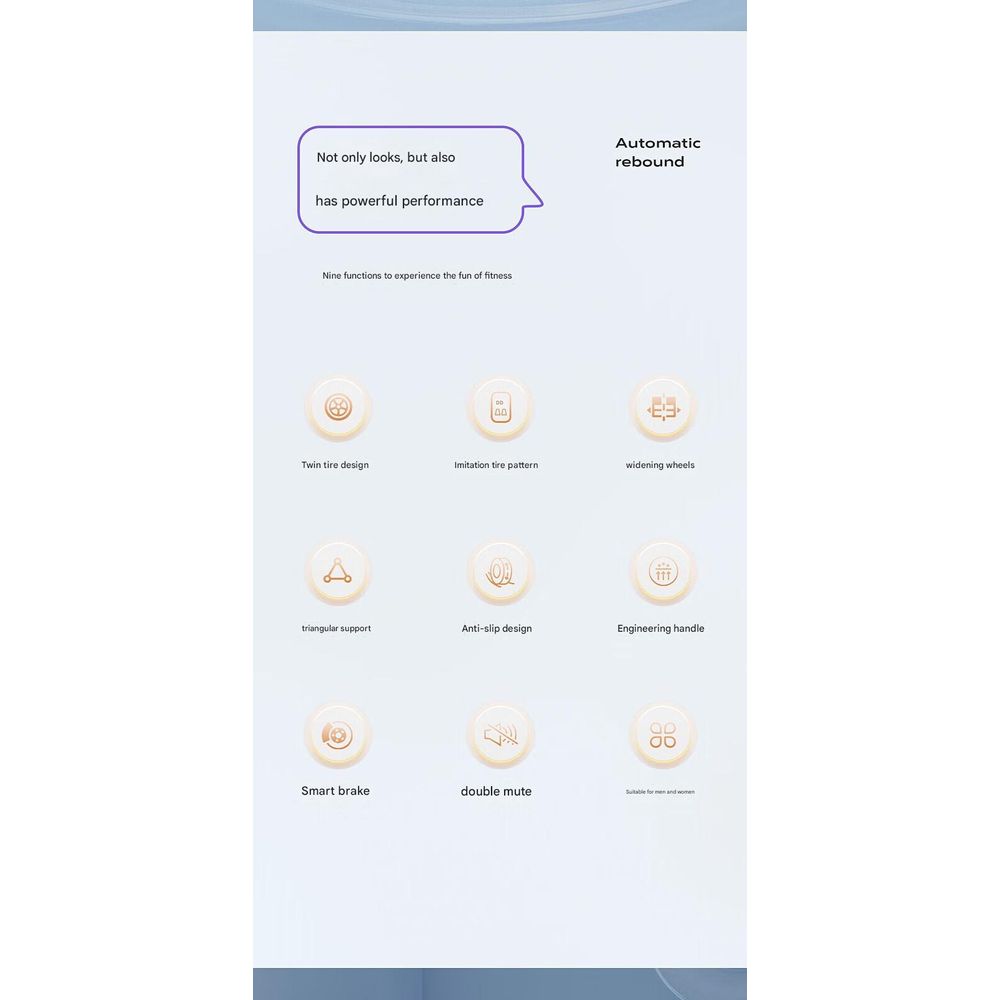 - User Experience: Beginner-friendly rebound assistance, Smooth and quiet operation, Comfortable padded armrests, Hands-free stable posture, Guided workouts via mobile holder, Reduced fatigue for longer sessions