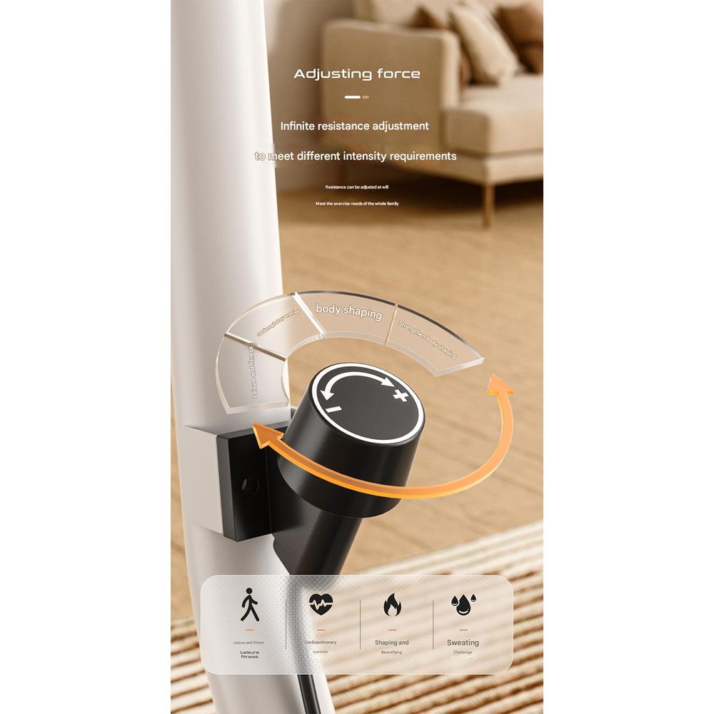- Design & Structure: Upright foldable frame, Dual-grip stabilizing handles, Large anti-slip foot pedals, Smooth belt-drive mechanism, Adjustable resistance knob, Compact fold-away structure, Sturdy steel support bars, Low-noise flywheel system