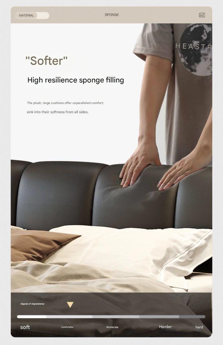 - Rounded Protective Frame Design: The bed frame is designed with softly curved padded edges that improve comfort, enhance safety, and elevate the bed’s premium designer appearance.