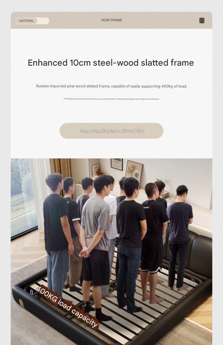 - Low-Profile Modern Base: Features a stylish low-height platform frame that enhances the spacious appearance of the room while creating a luxurious modern floating-bed look.