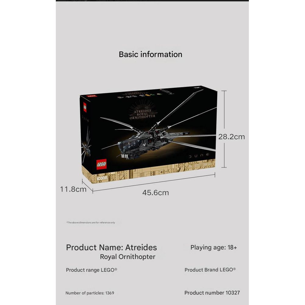 - Model: Dune Atreides Royal Ornithopter 10327 a detailed and screen accurate recreation of the legendary aircraft from the Dune movie symbolizing power technology and the strength of House Atreides.