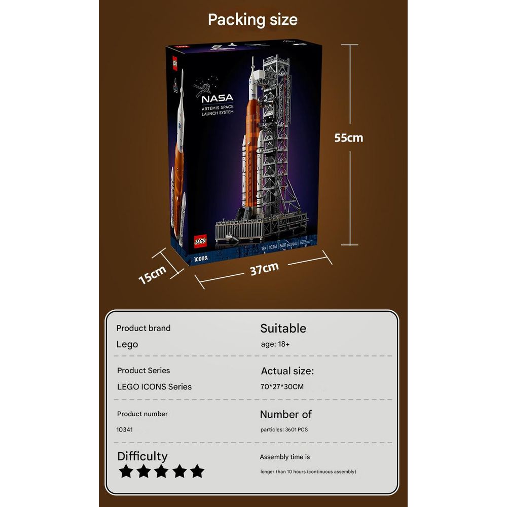 - Model: NASA Artemis Space Launch System 10341 a highly detailed and realistic recreation of NASA’s powerful Artemis rocket, Orion spacecraft, and mobile launch tower