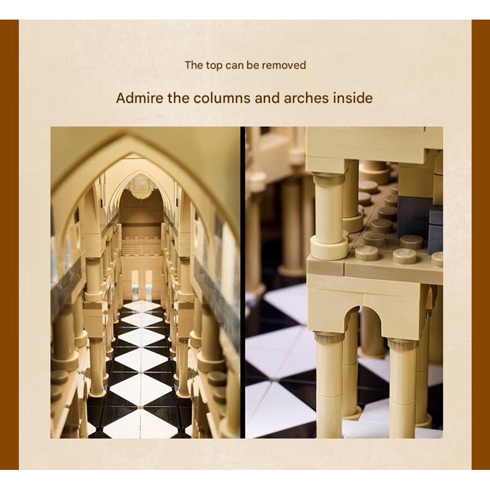 - Includes stained glass window effects and flying buttress designs for authenticity