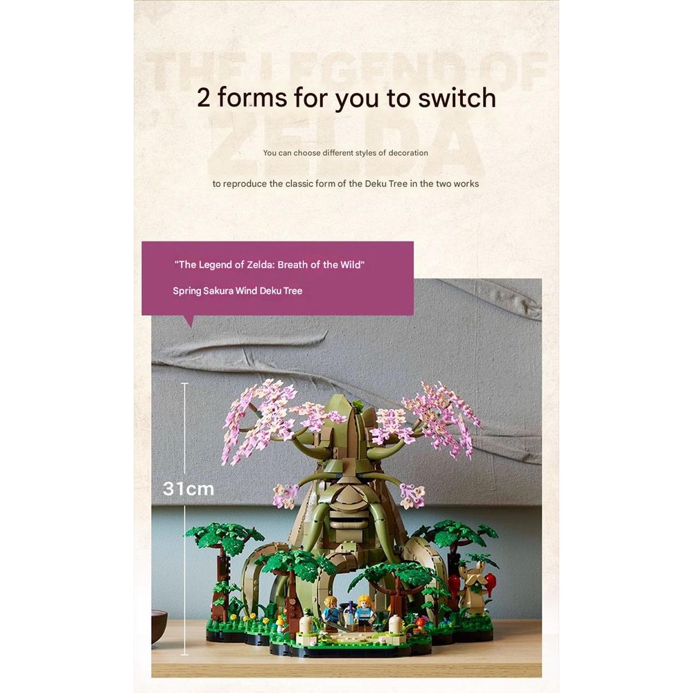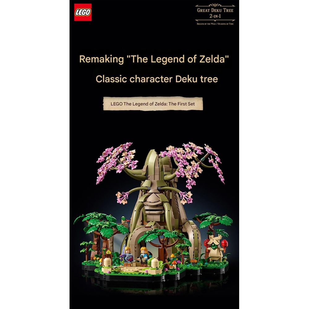 - Includes two build options representing the Great Deku Tree from Ocarina of Time with Link in his Kokiri outfit and from Breath of the Wild with the older Deku Tree and Champion Link