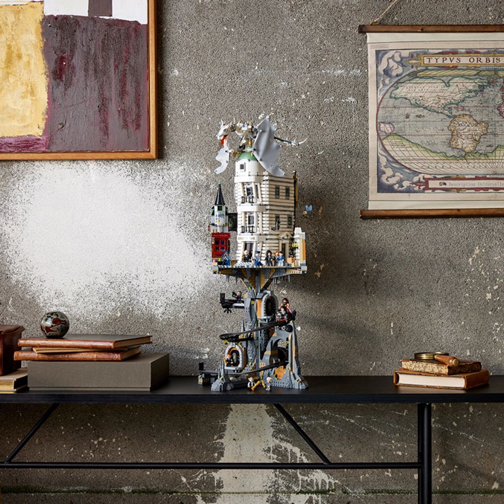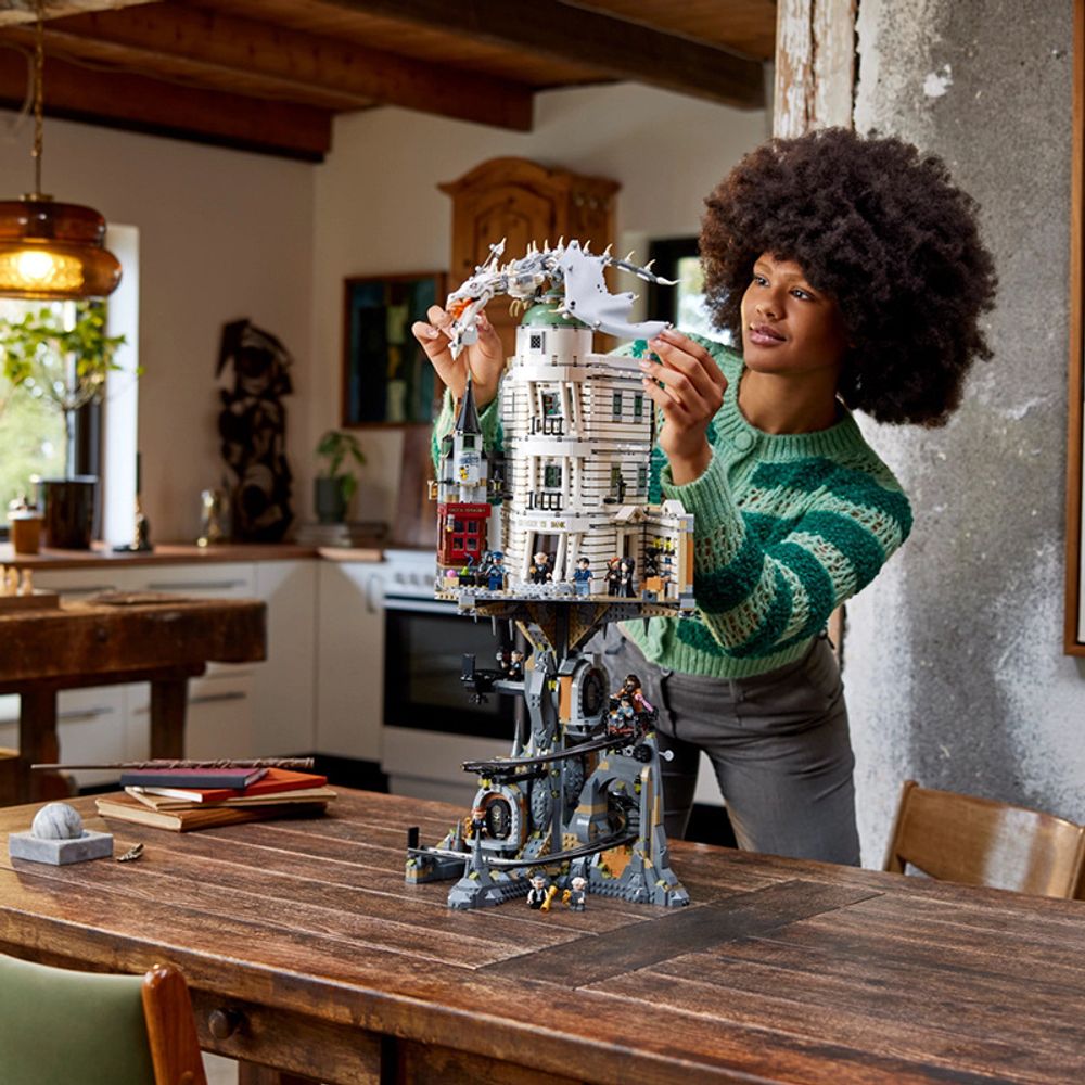 - Model: Gringotts Wizarding Bank 76417 a highly detailed modular set capturing the grandeur of the wizarding bank from Diagon Alley along with the underground vault system and dragon from the Harry Potter films