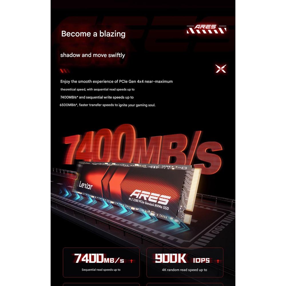 - Model: Lexar M.2 2280 PCIe Gen4x4 4TB NVMe SSD designed for ultra-fast storage performance and high-capacity computing workloads.