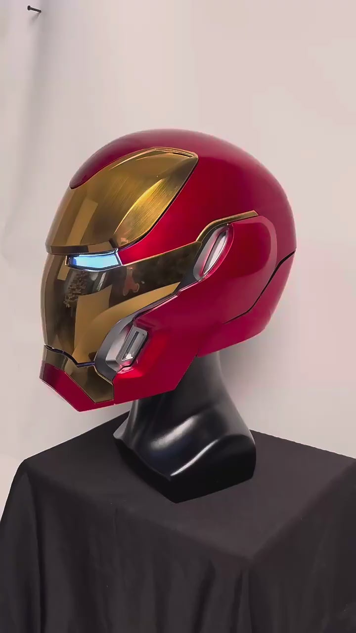 - Design: A 1:1 scale wearable replica, the Mechahead MK50 helmet faithfully reproduces the proportions, curves, and facial structure of the iconic Iron Man design. The helmet integrates motorized components for automated faceplate opening and closing, with smooth motion control and mechanical sound effects.