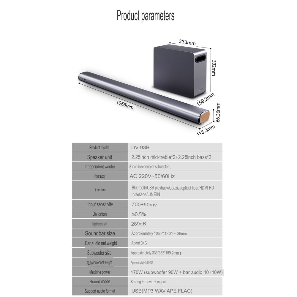 Interface Type: Bluetooth, optical fiber, coaxial, AUX, USB, HDMI ARC