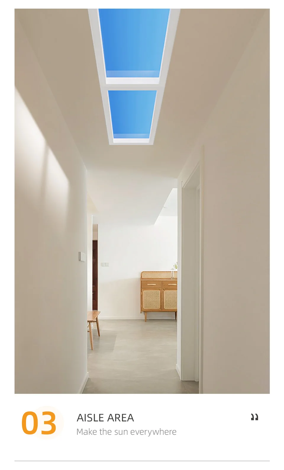 Turn on the sky light, look up and see the blue sky that is like the rain over the sky. You can see the soft sunlight sprinkled on the wall, as if you are in it, as if standing under the blue sky and white clouds.