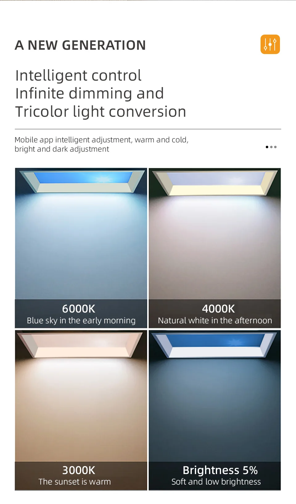 Mobile app intelligent adjustment,warm and cold.Bright and dark adjustment
