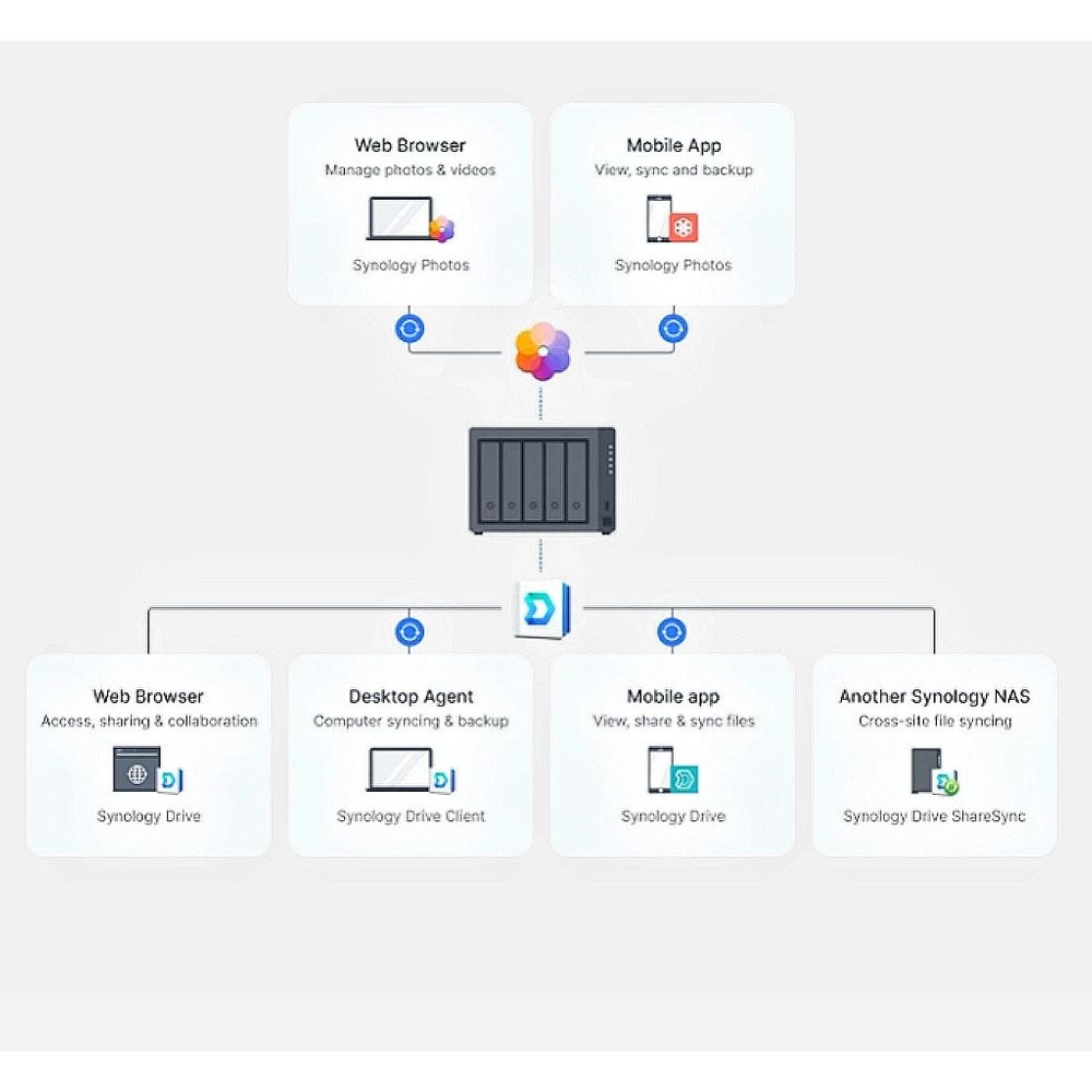RAID Options: Supports RAID 0, 1, 5, 6, 10, and Synology Hybrid RAID (SHR)