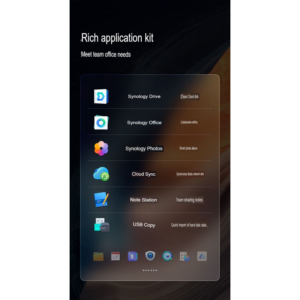 - Technology: Synology DSM operating system featuring advanced data protection, RAID management, virtualization support, AI-powered photo management, encrypted backups, and cloud integration.