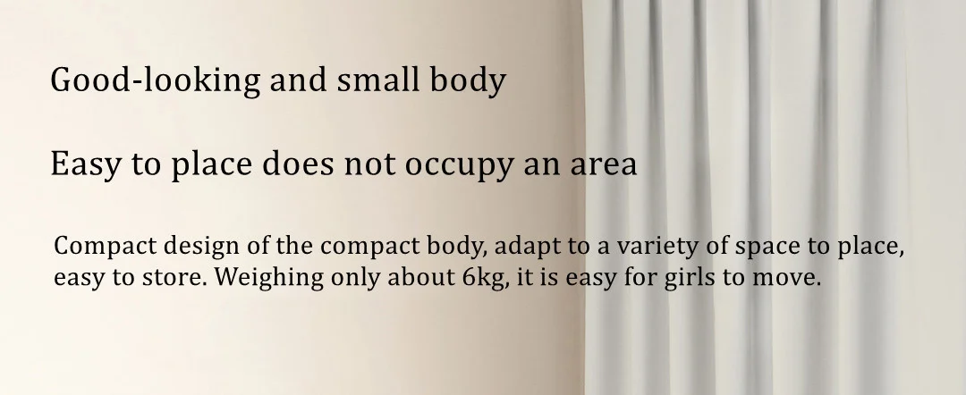Compact body design, fits a variety of spaces to place, easy to store. Weighing only about 6kg, it is easy for girls to move.