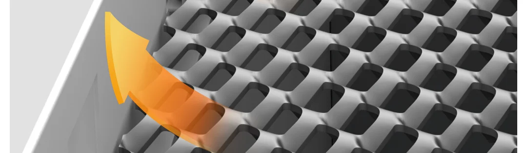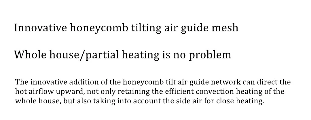 The innovative addition of the tiltable honeycomb air guide network can direct the warm airflow upward, not only retaining efficient whole-house convection heating, but also taking into account the side air for nearby heating.